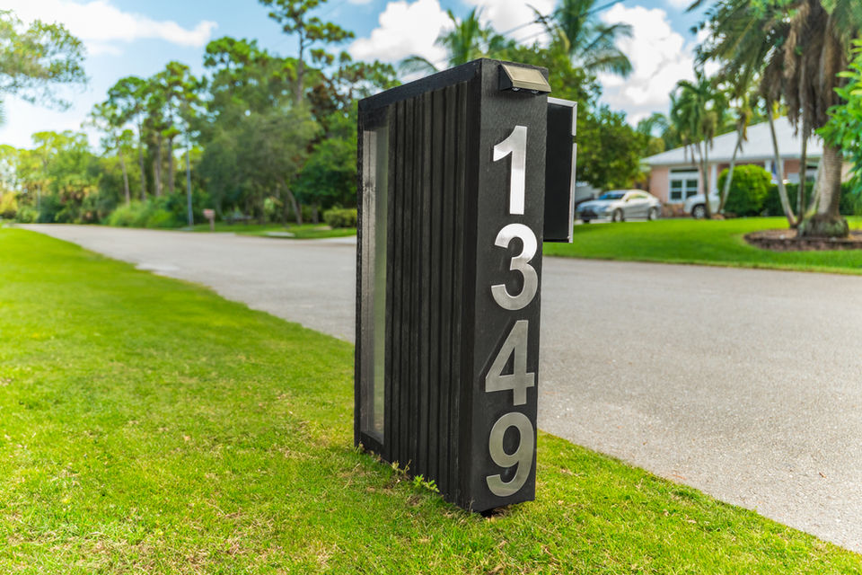 Mailbox Numbers: Select from modern fonts, sizes, and finishes for a tailored look.